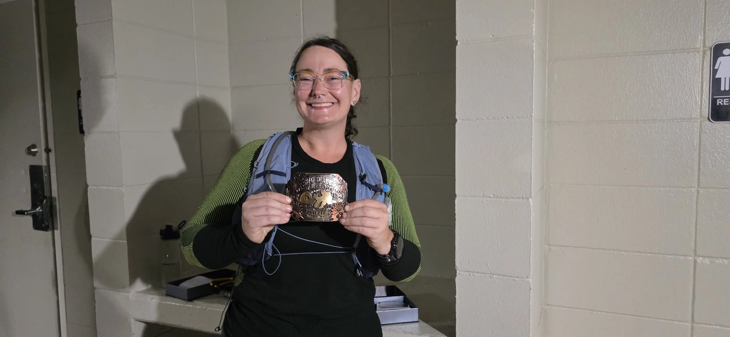 My friend Stephanie, who lives close to the trailhead met us out there despite it being 1am! Stephanie, Jacqueline, Stacey, KJ, Tyler, and Joe welcomed us into the finish. He presented us with our buckles and we headed home to get some much-needed sleep.