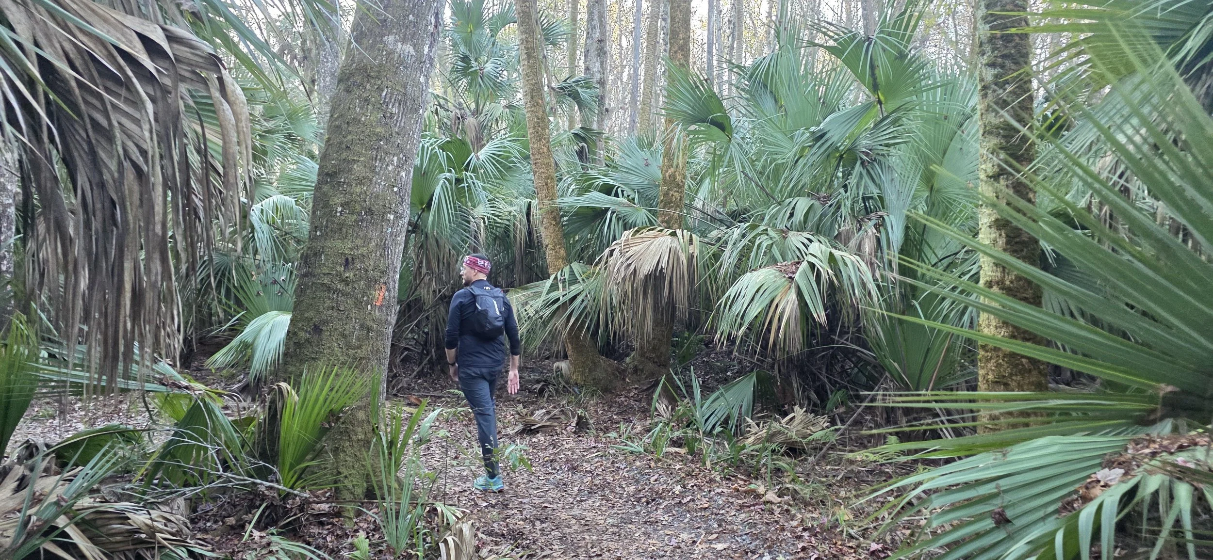 The next section was the absolute worst of the entire journey. Joe, the RD for this, has a free race in this area. It starts at Pat’s Island, heads south to Juniper Springs, returns, heads north to Hopkins Prairie, and then back. I ran the 50k the first year it was held, but when I did my ACFL and the Two Prairies race, the sugar sand was not as bad. This time though? ROUGH. The sand shifted a lot under our feet and halfway through the Hopkins Prairie section we were wishing for death. Kevin stopped to dump sand from his shoe and my right knee was killing me. I couldn’t fathom doing another 100+ miles on this dang thing. Kevin gave me a massage and at the end made the motion of screwing my kneecap back on. I was then magically healed! No joke. My knee didn’t hurt once after he did that!