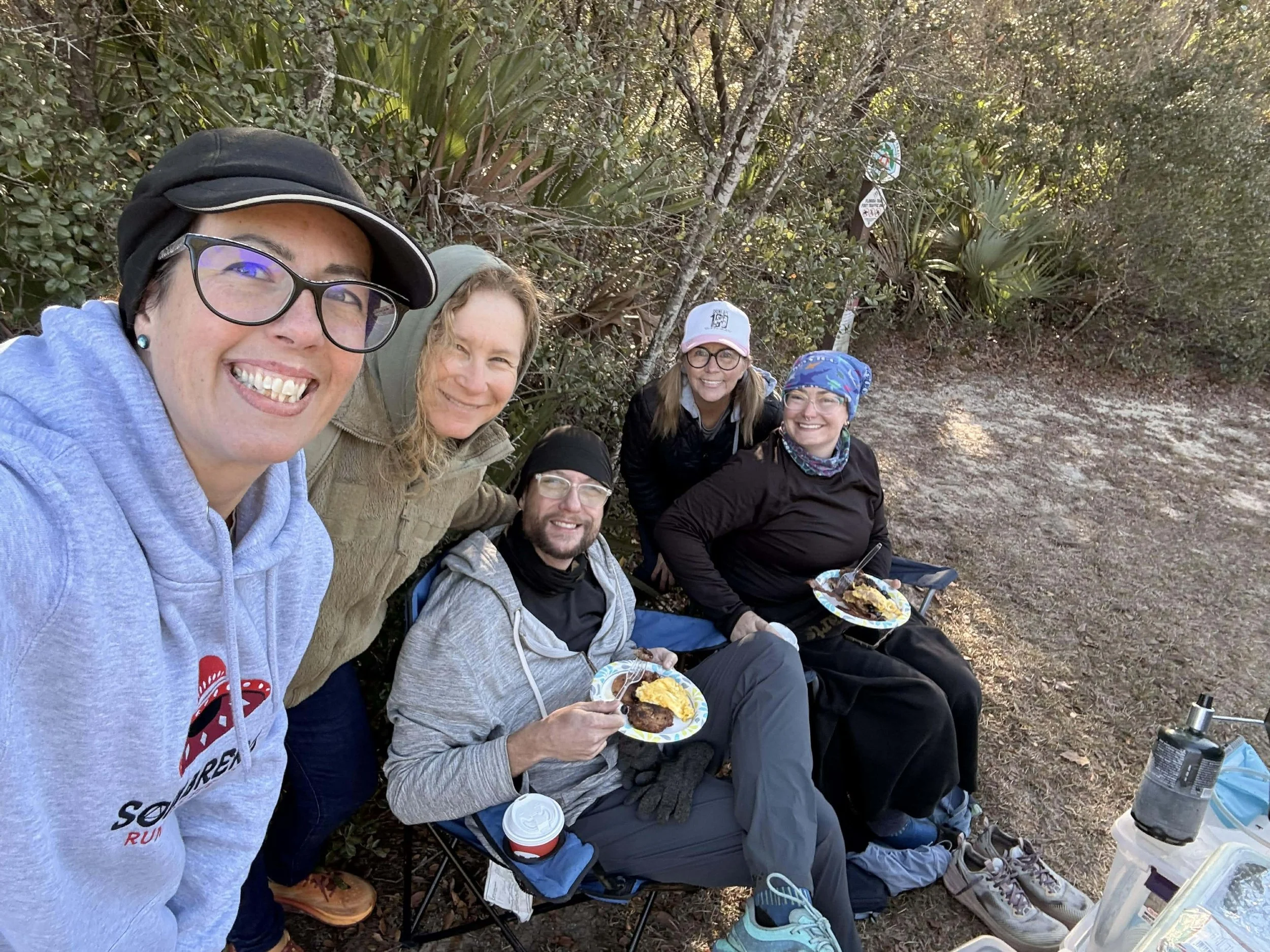 We probably spent about 40 minutes in the car trying to get warm. Despite all of our layers, we weren’t made for the cold. We headed out again knowing that at mile 28, Juniper Springs, we would be seeing our friend Judie who was going to make us a hot breakfast. We got into Juniper and were treated to an amazing spread. Of course, I had to get into the car again because I was shivering uncontrollably. Yet again, we heated up and then headed out!